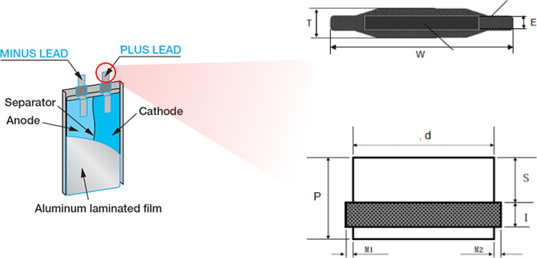 전기자동차(EV), 하이브리드자동차(HEV), 전력저장장치(ESS)용 Pouch형 대형 리튬이온 2차전지의 전극단자