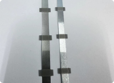 plastic film과 metal sheet의 접착제로 pouch형 리튬이온 2차전지 cell의 전극 단자 역할을 수행하는 부품입니다.